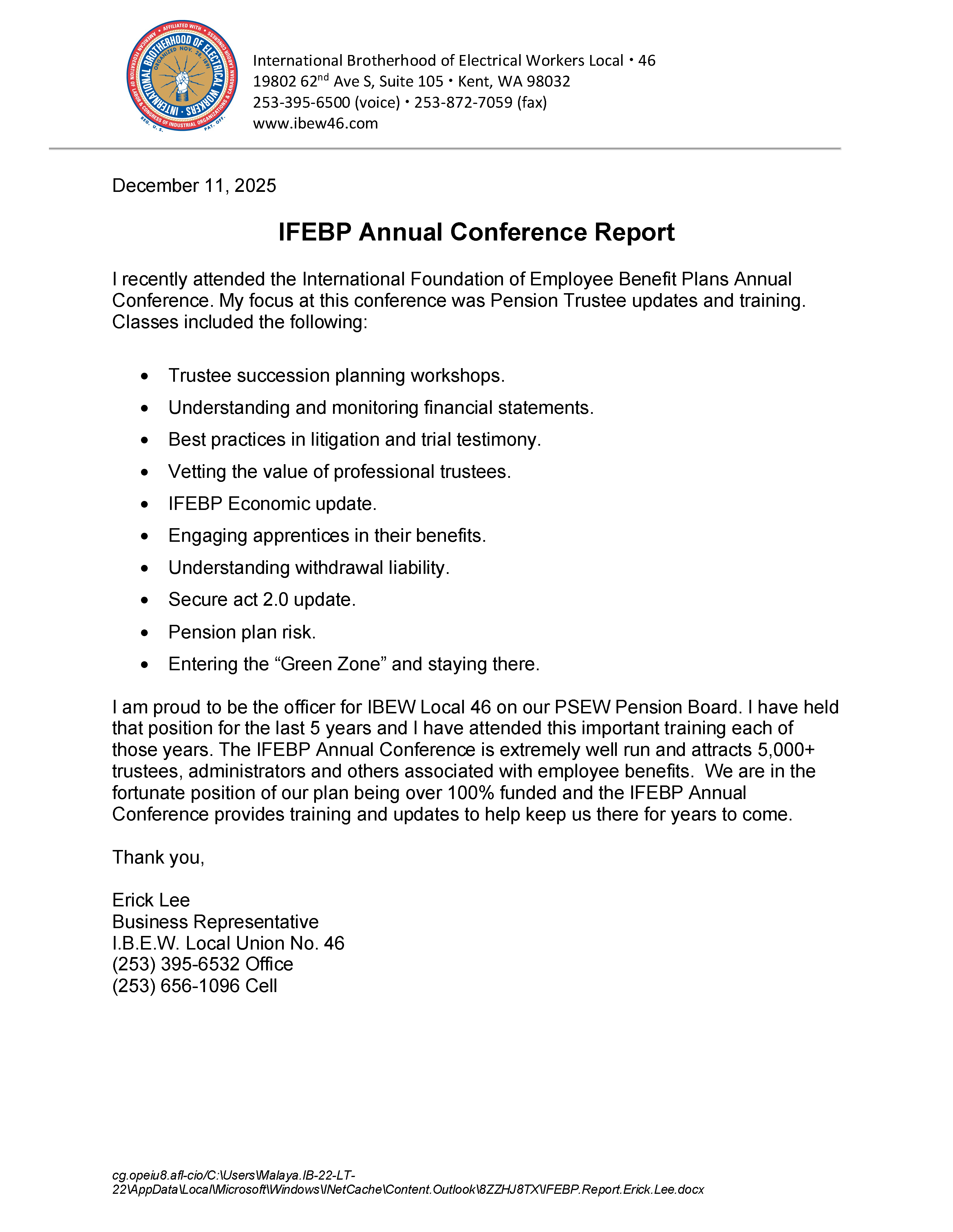 For more info, please contact Chapter President ANTONIO BUTLER "TONY": ANTONIO@IBEW46.COM or 253-395-6508.